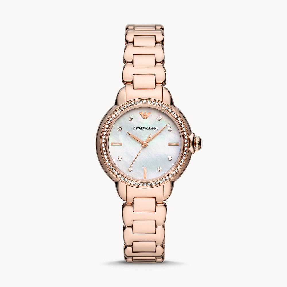EMPORIO ARMANI SLIVER AND ROSE GOLD ARTIFICIAL MOP LADIES