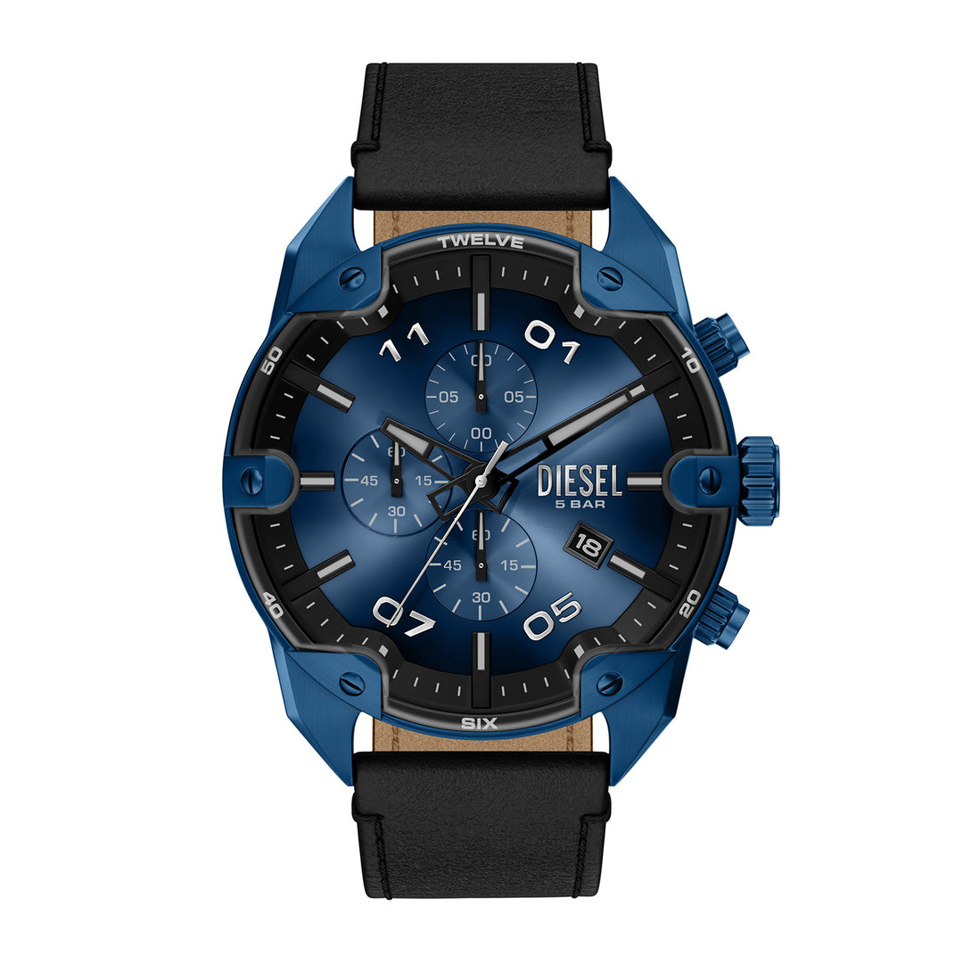 Diesel Men's Spiked Chronograph Black Leather Watch