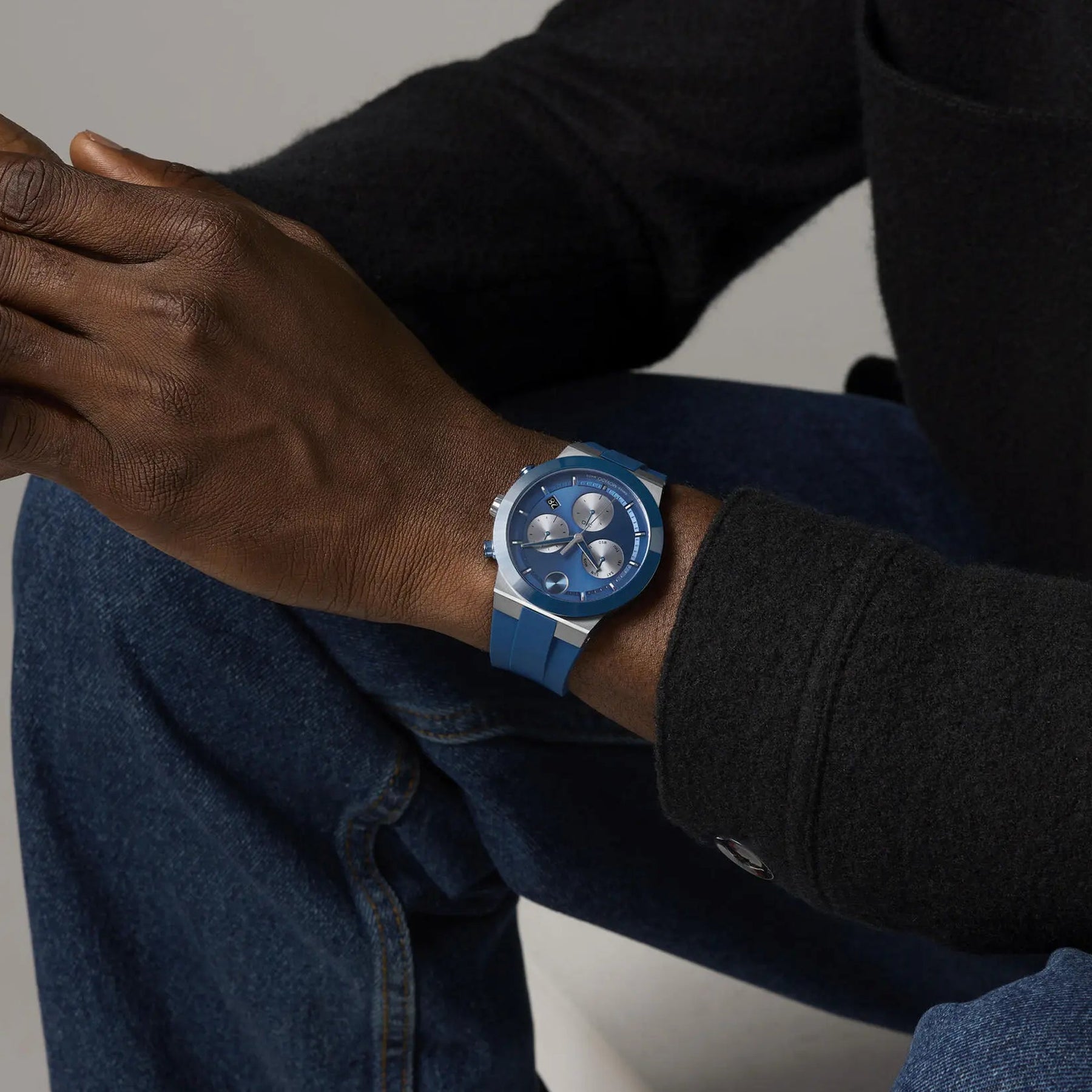 Movado Bold Men's Watch Grey Tone Case Blue Dial Quartz