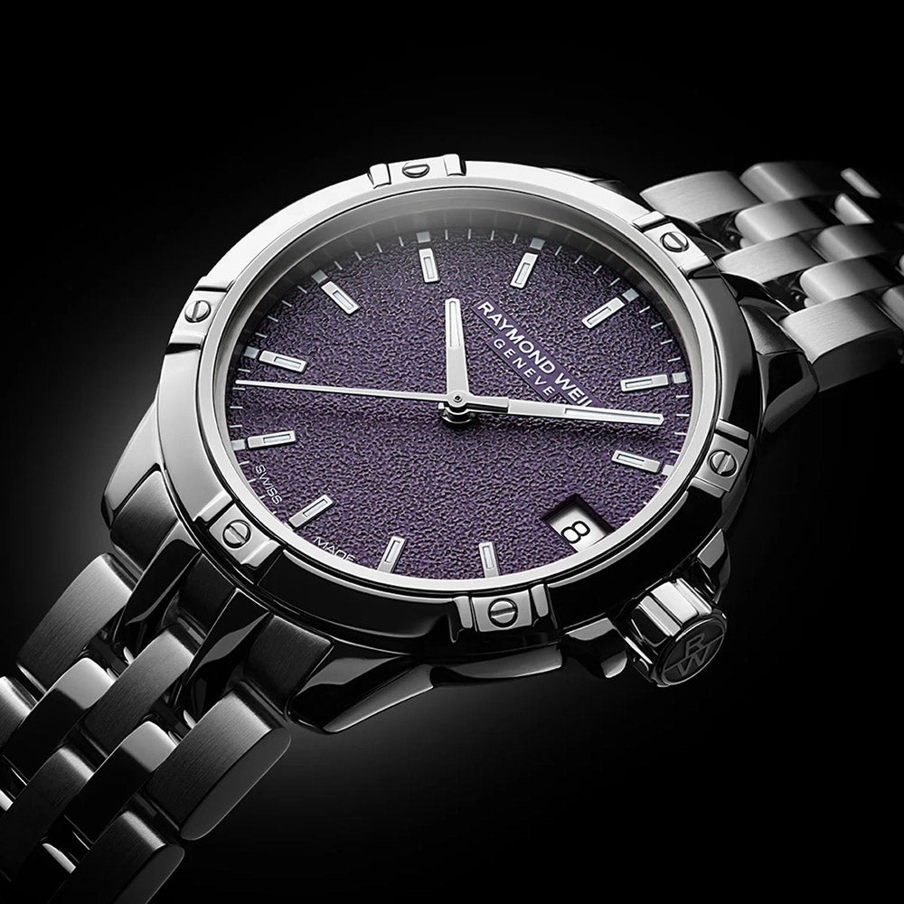 Raymond Weil Tango Stainless Steel Case Aubergine Purple Frosted Dial Quartz Watch