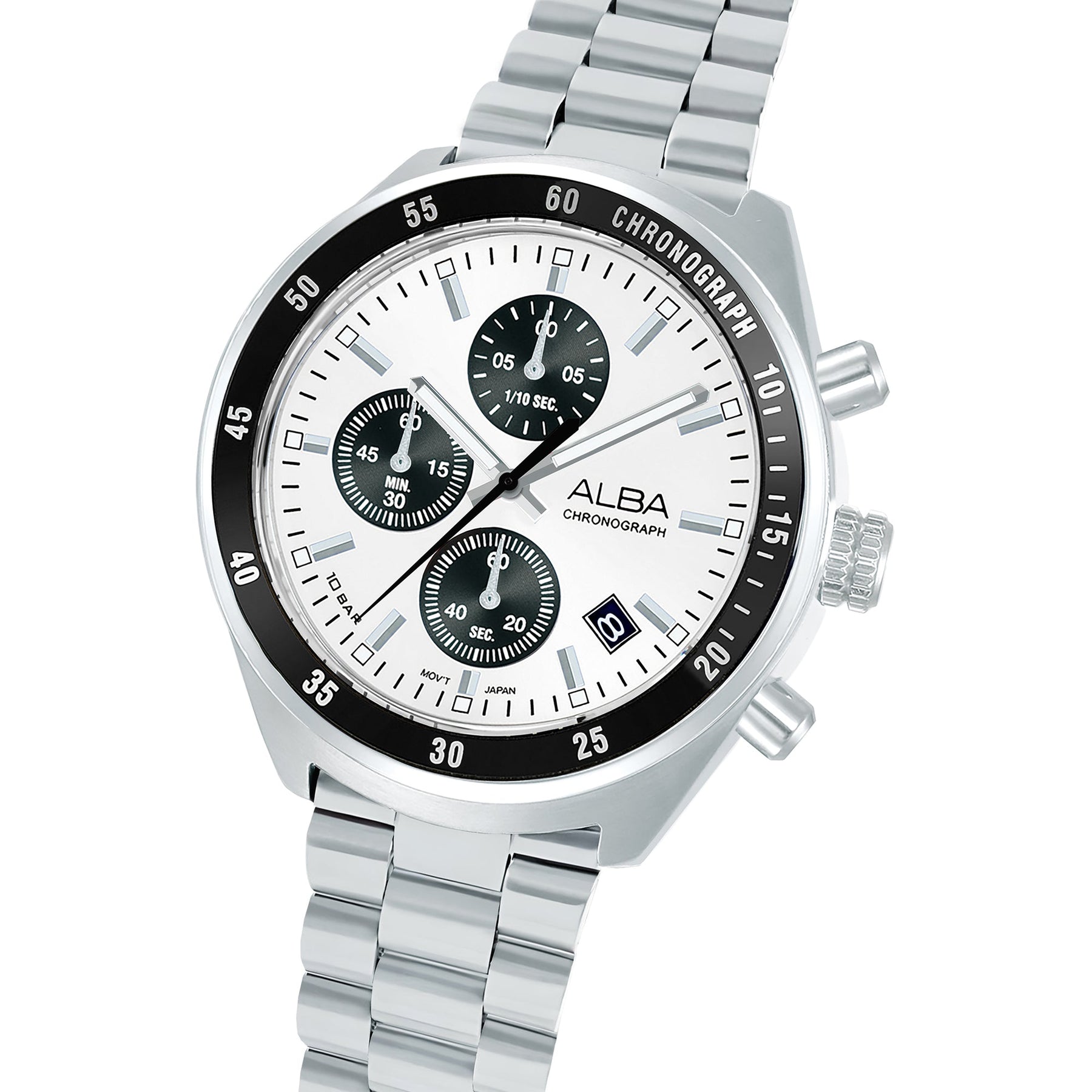 3 hands with date, 60 minute chronograph 1/10th second subdial