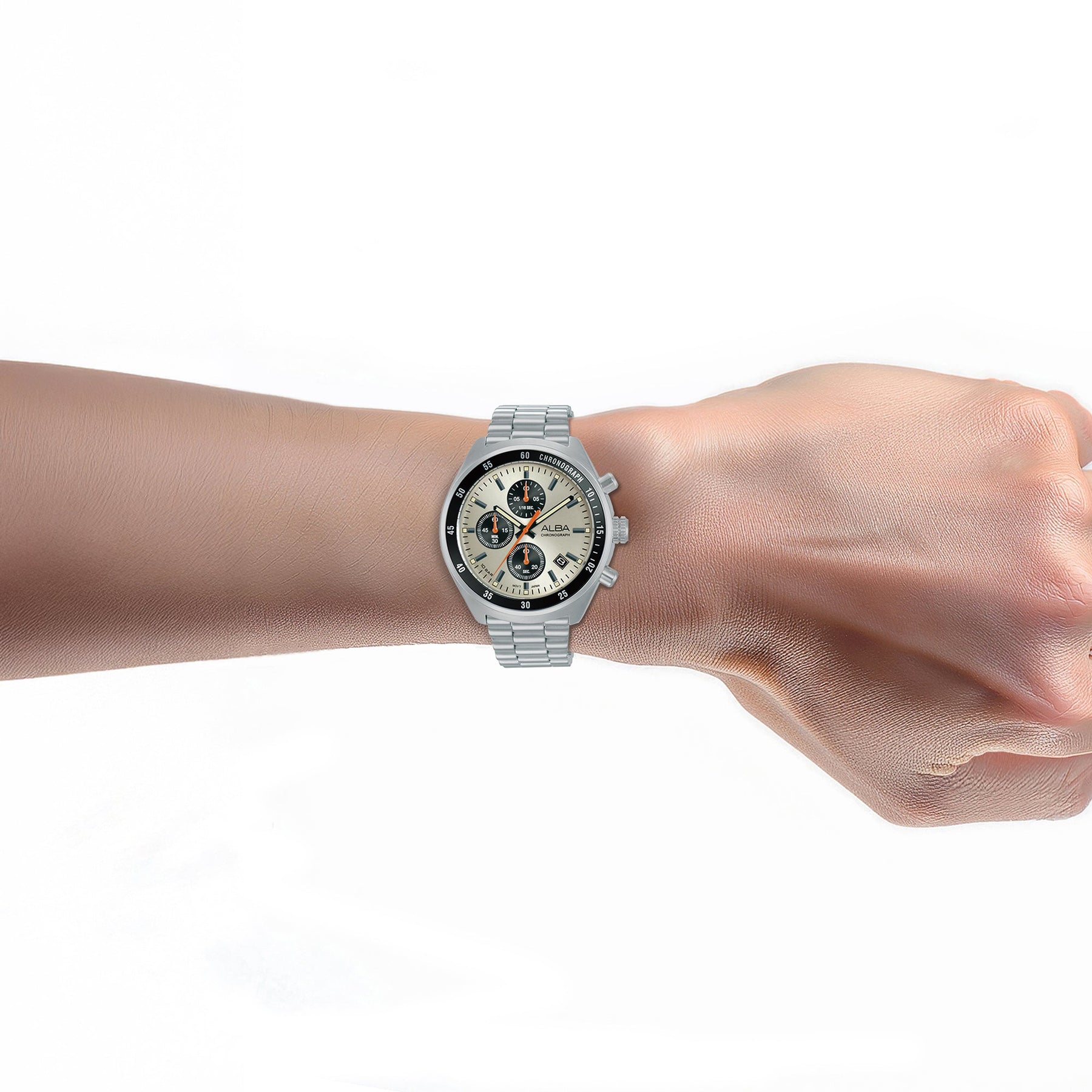 3 hands with date, 60 minute chronograph 1/10th second subdial