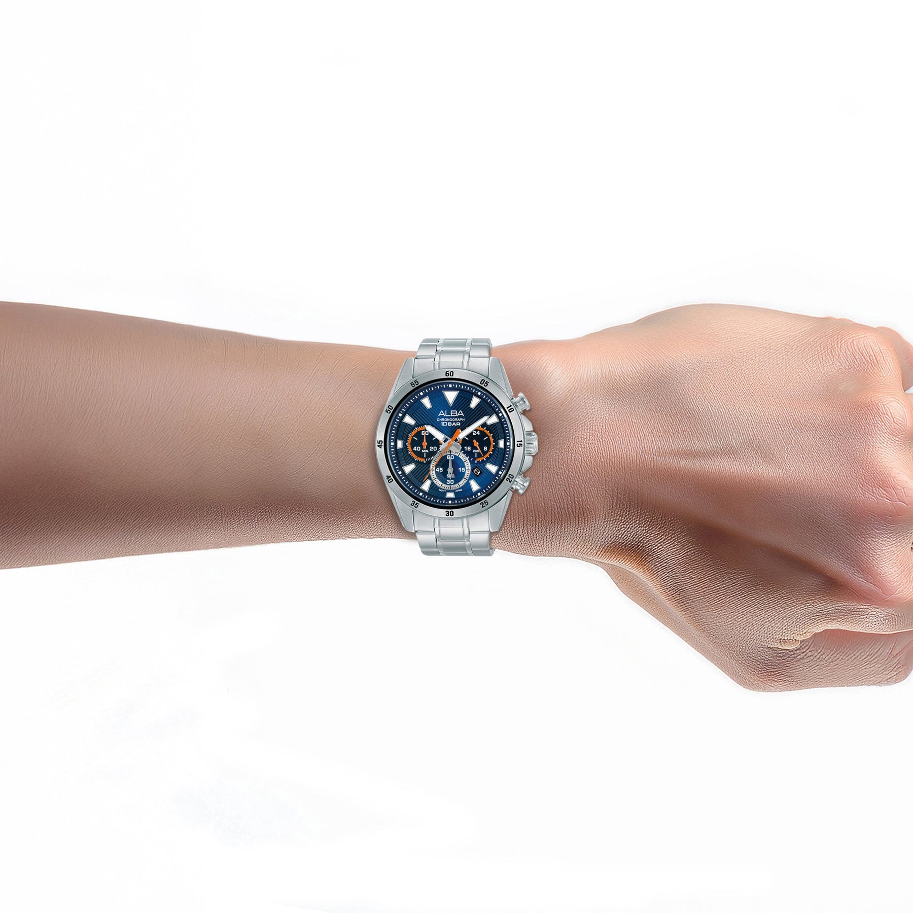 3 hands with date, 60 minute chronograph and 24 hour subdial