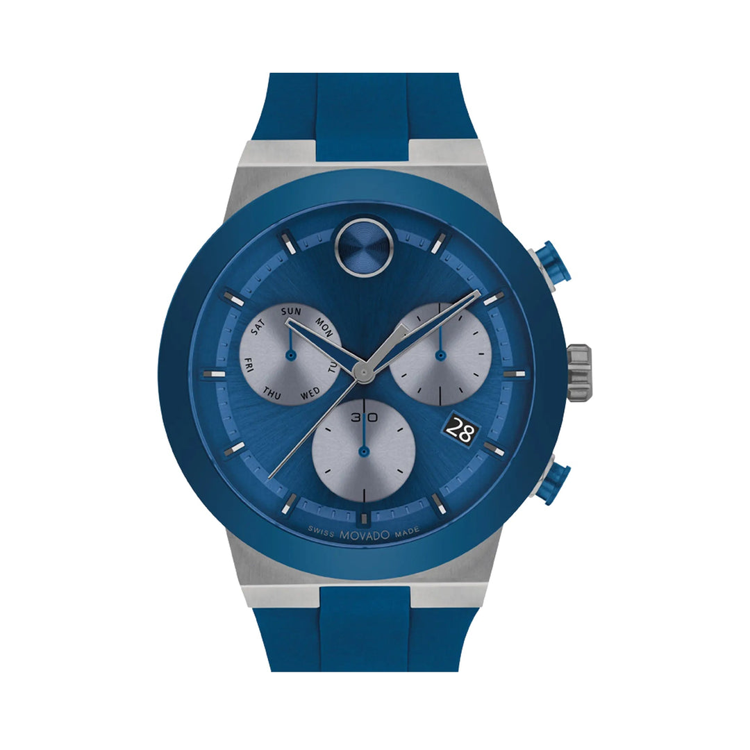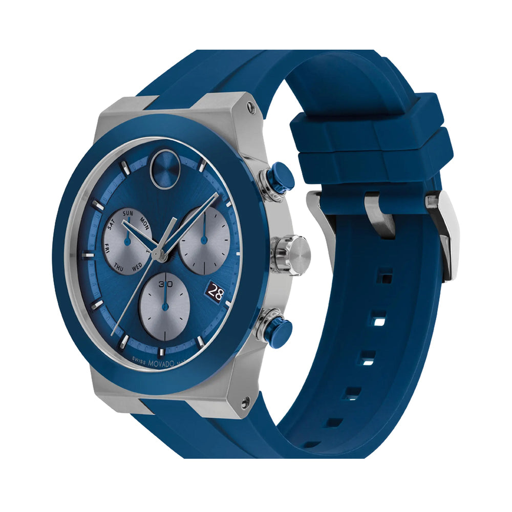 Movado Bold Men's Watch Silver Tone Case Blue Dial Quartz