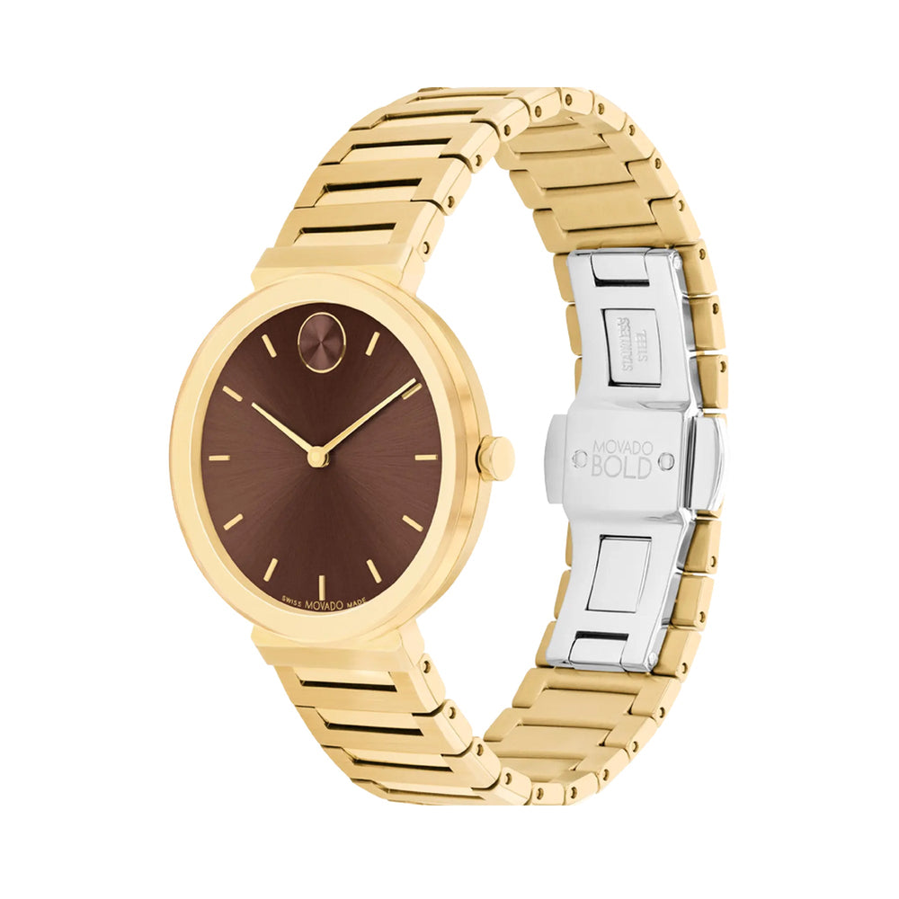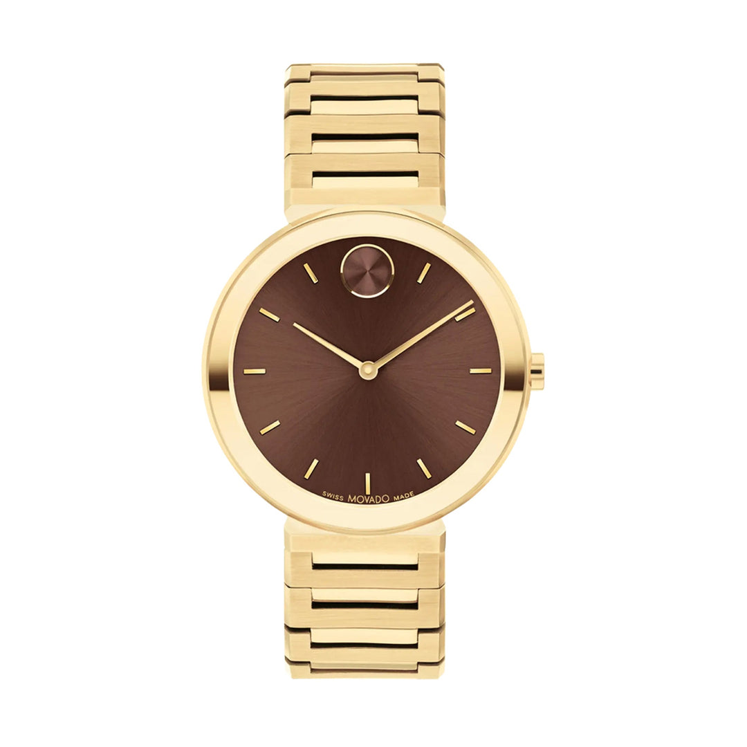 Movado Bold Men's Watch Gold Tone Case Brown Dial Quartz