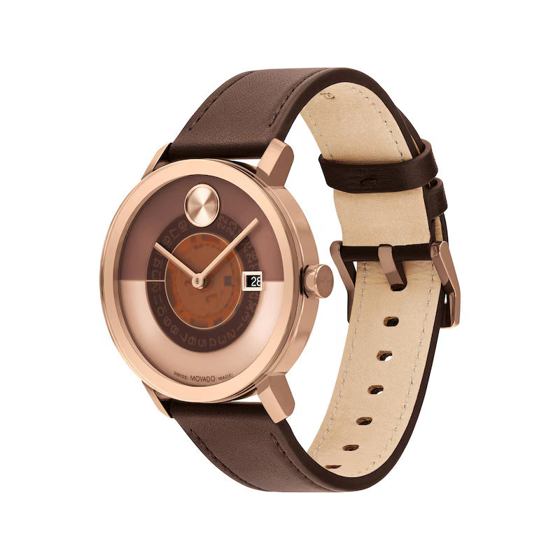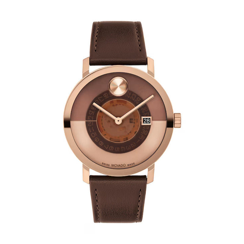 Movado Bold Men's Watch Rose Gold Tone Case Brown Dial Quartz