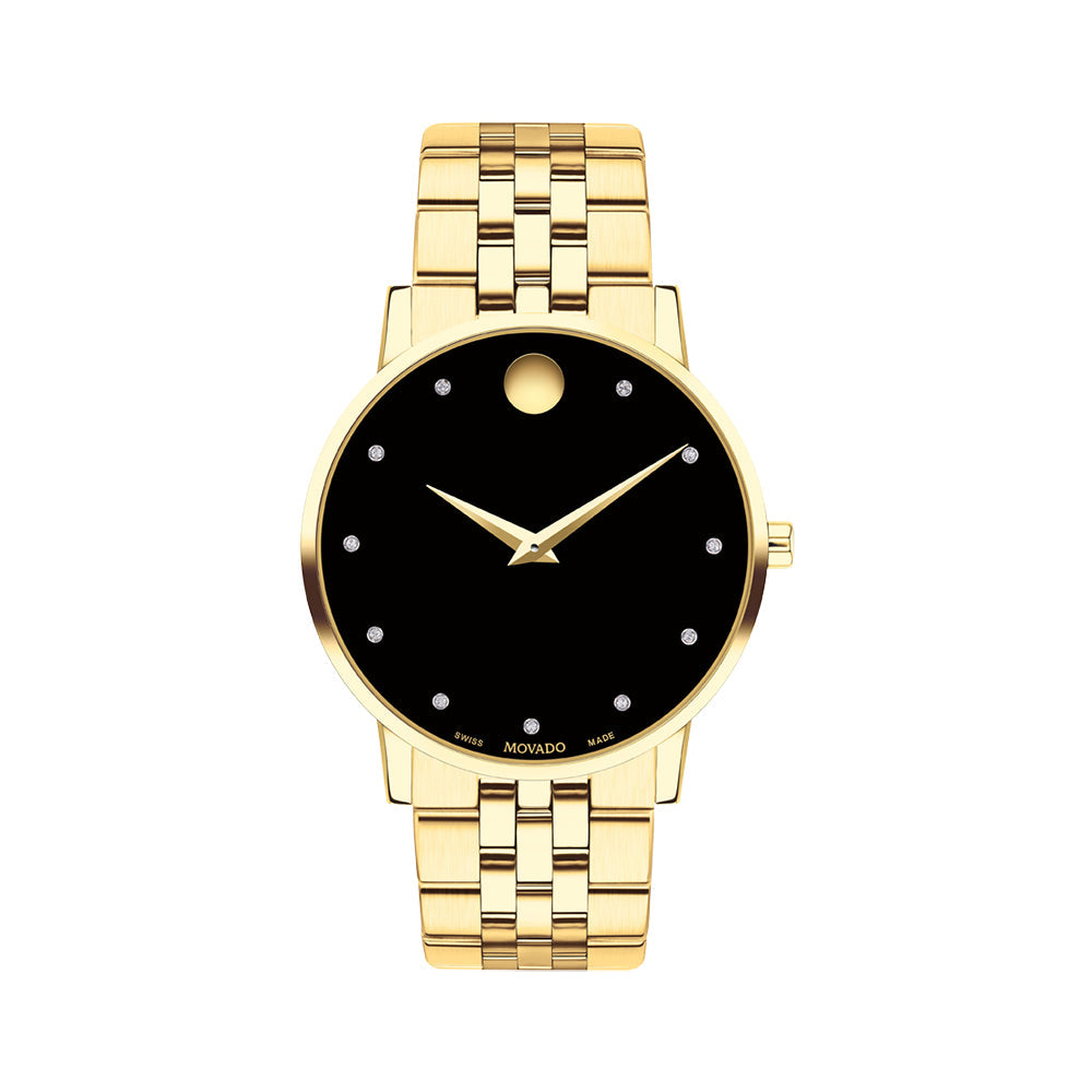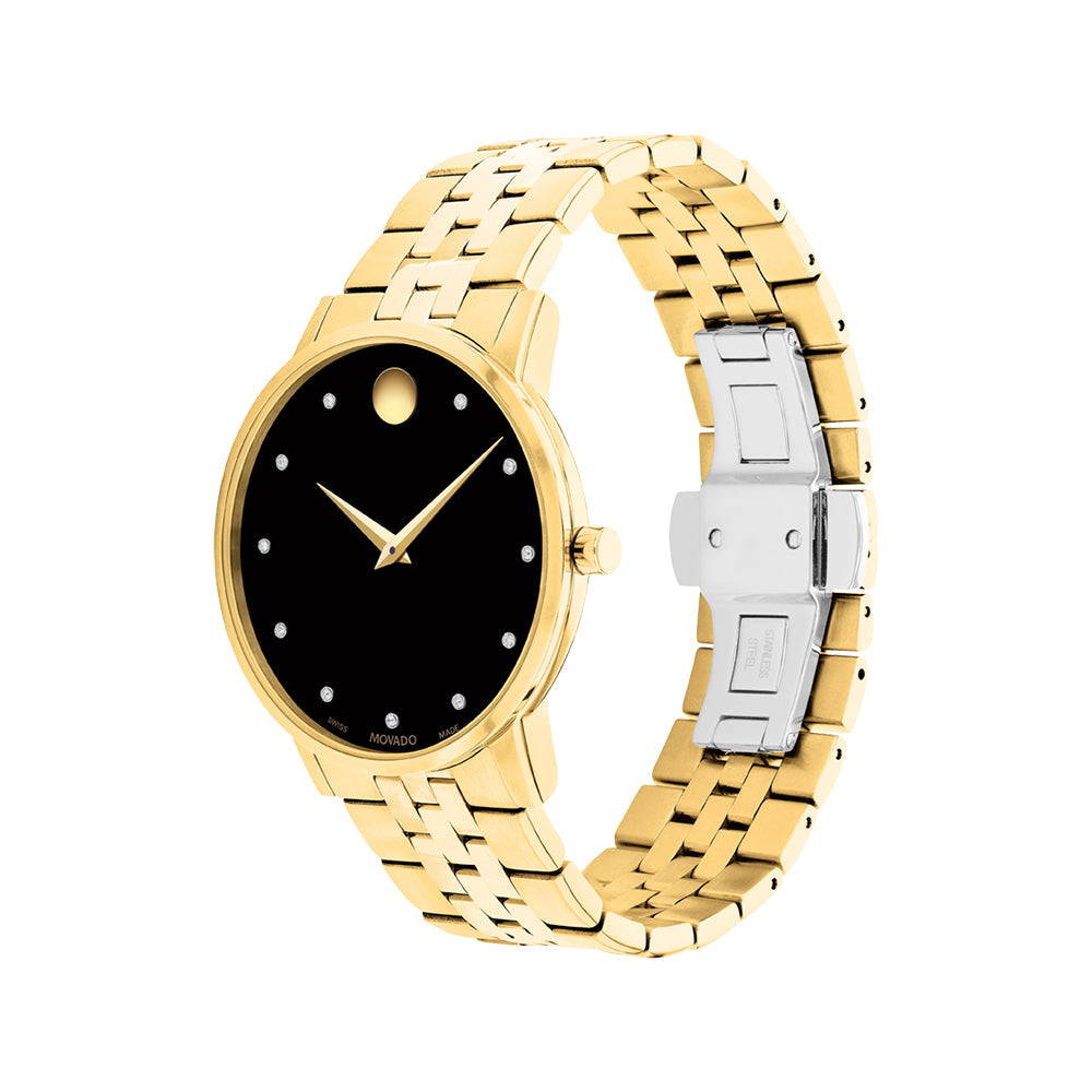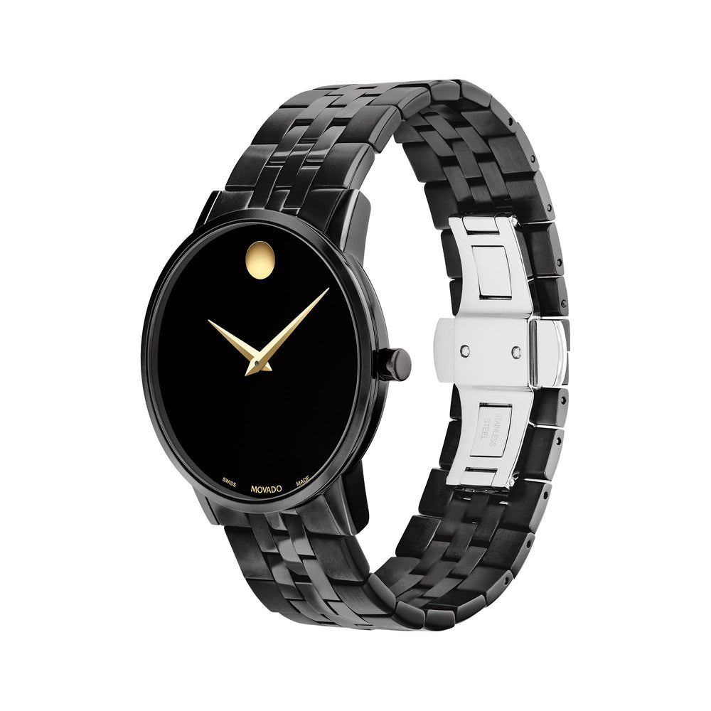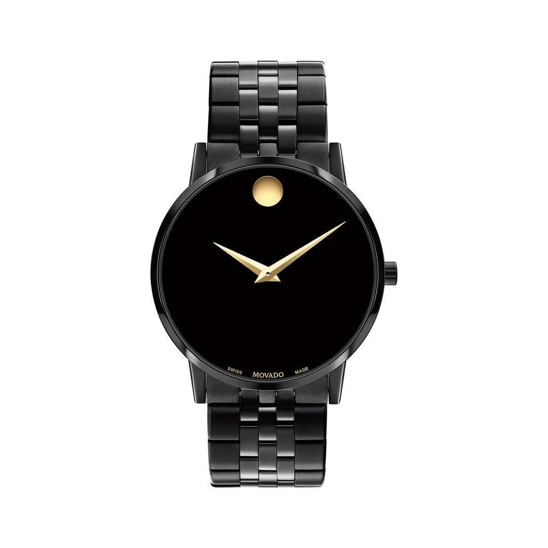 Movado Bold Men's Black Dial Watch Gold Tone Case Quartz