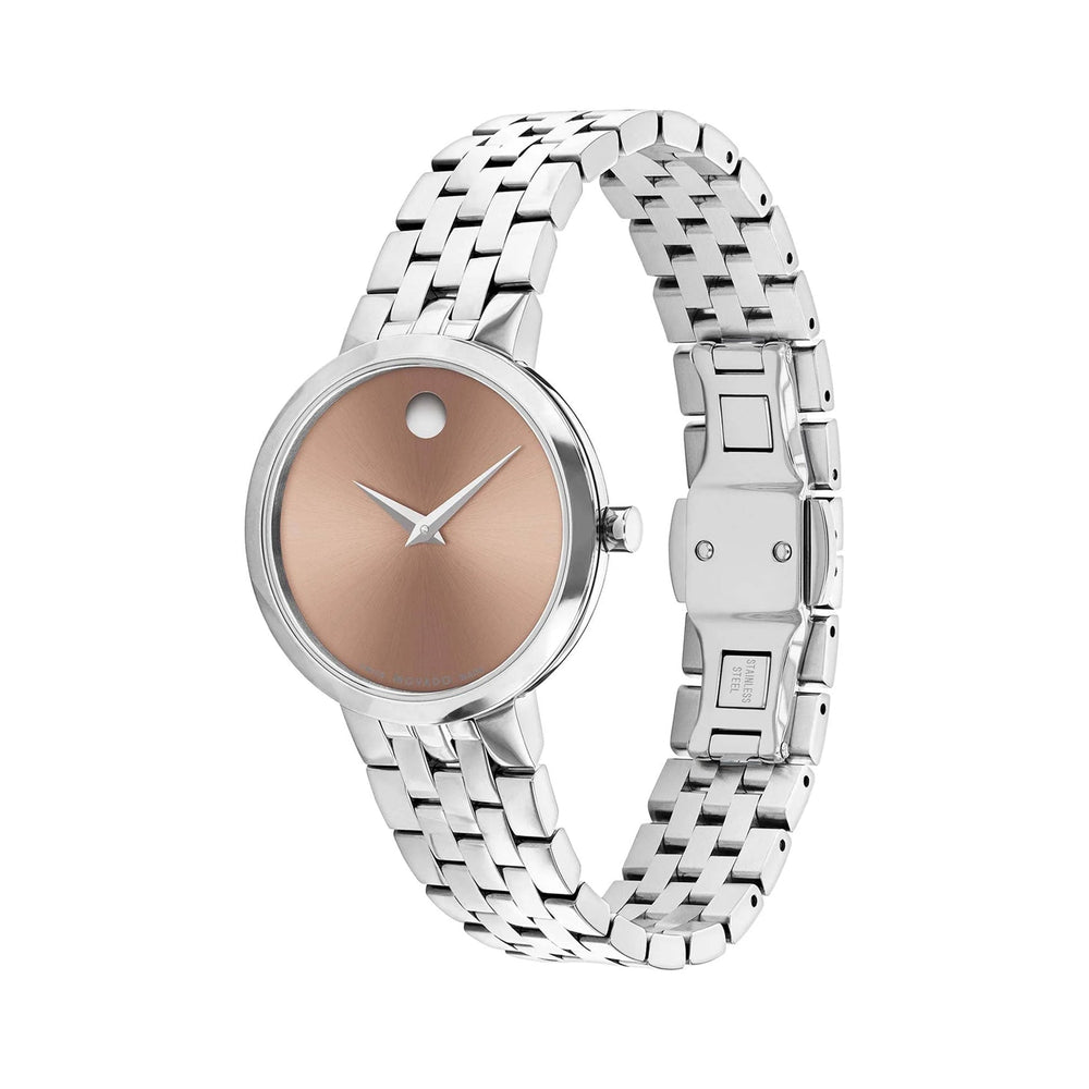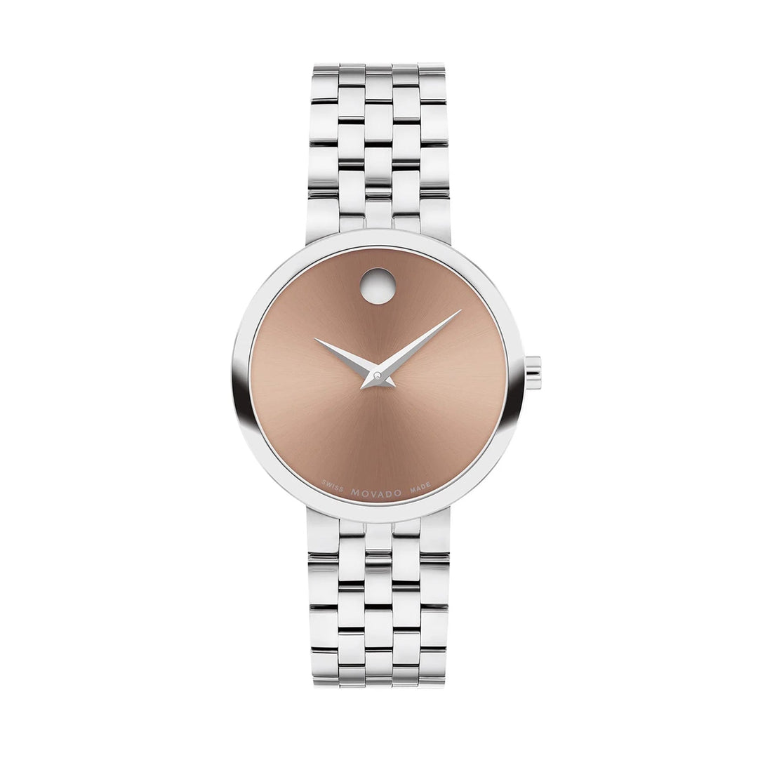 Movado Ladies Watch Silver Tone Case Brown Dial Quartz