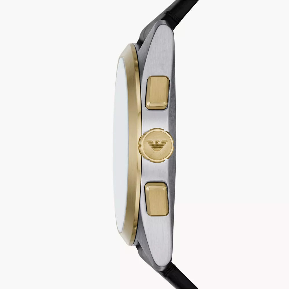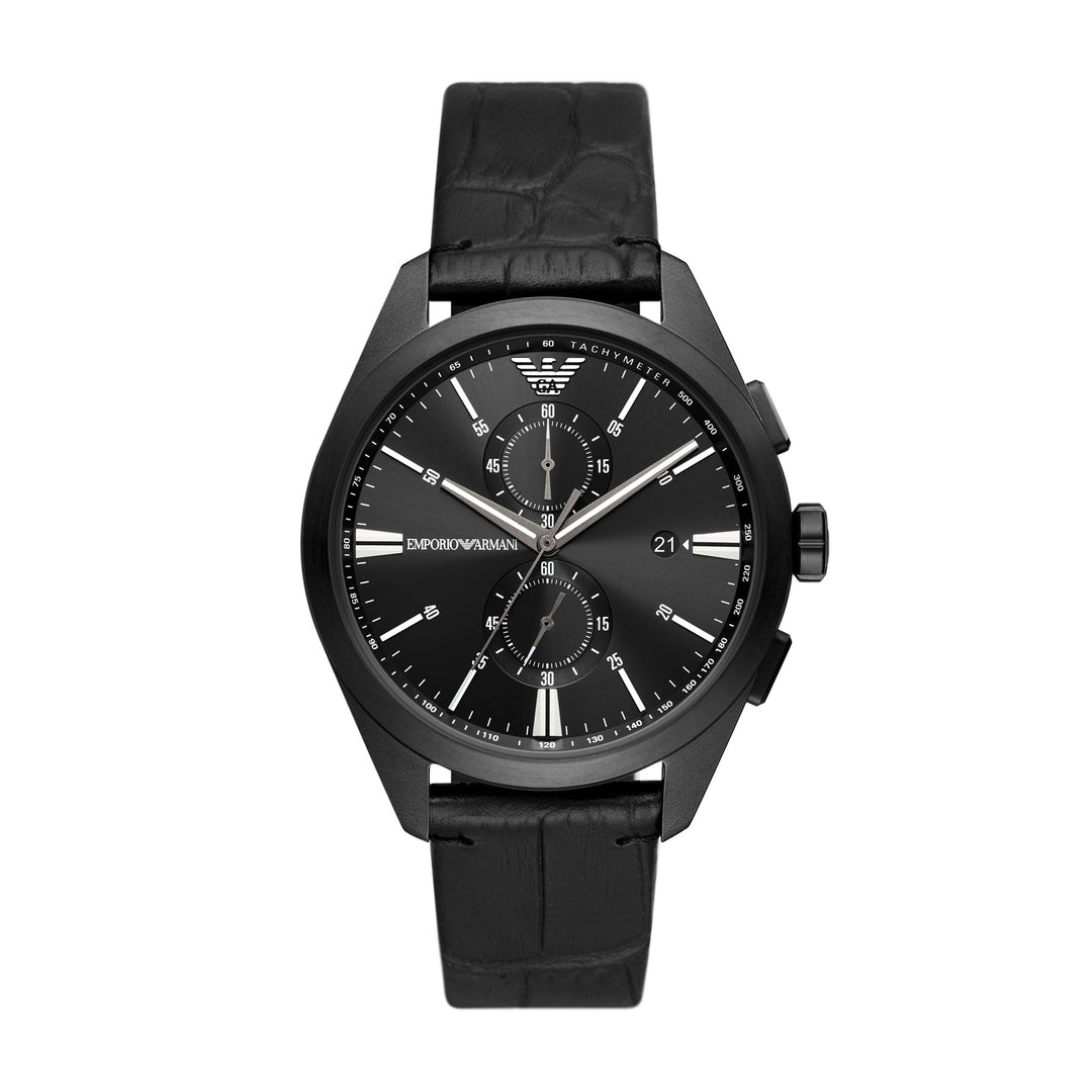 EMPORIO ARMANI CHRONOGRAPH BLACK LEATHER WATCH