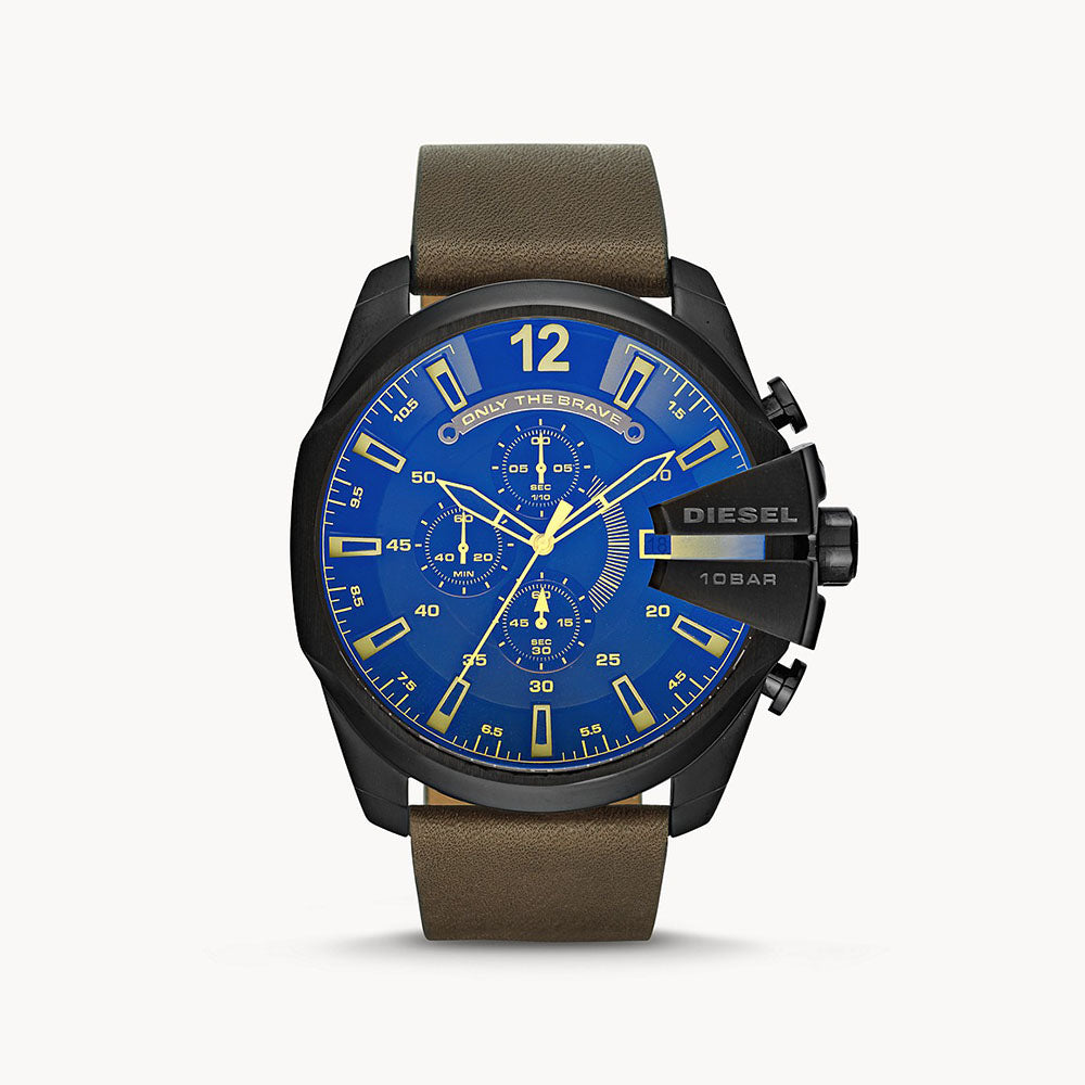 Diesel Men'S Mega Chief Chronograph Brown Leather Watch
