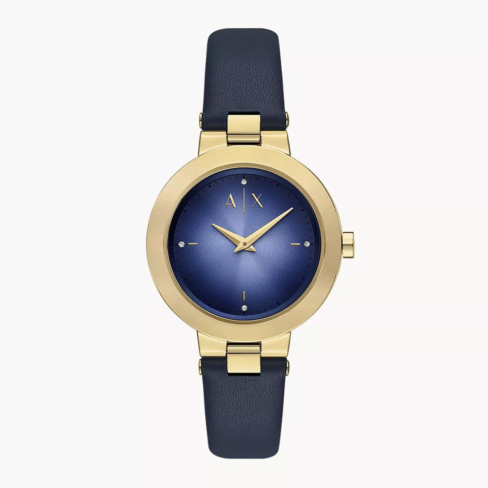 Armani Exchange Women's Two-Hand Blue Leather Watch