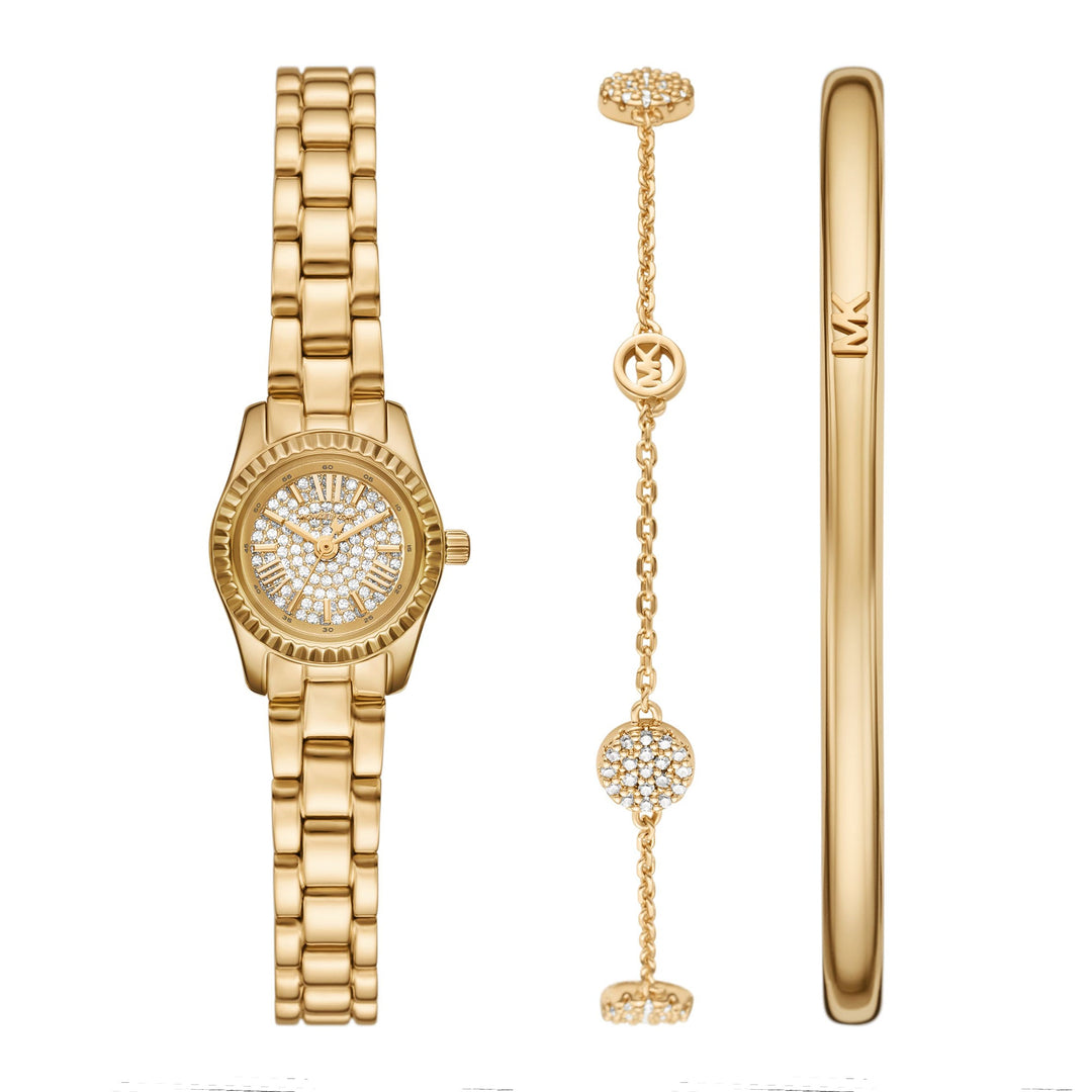Michael Kors Women's Lexington Three-Hand Gold-Tone Stainless Steel Watch Gift Set