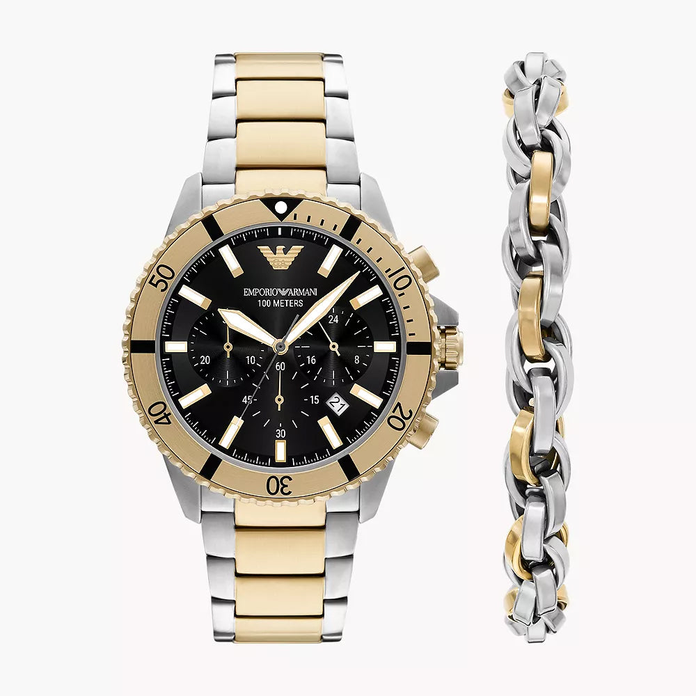 Emporio Armani World Explorer Chronograph Two-Tone Stainless Steel Watch and Bracelet Set