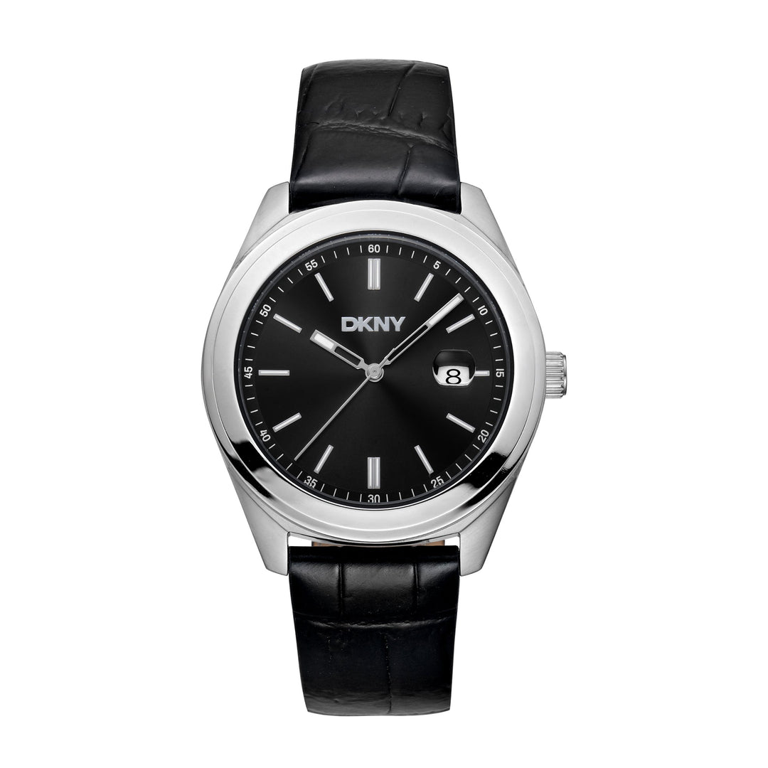 DKNY EVERYDAY Men's Black Dial Leather Strap Watch