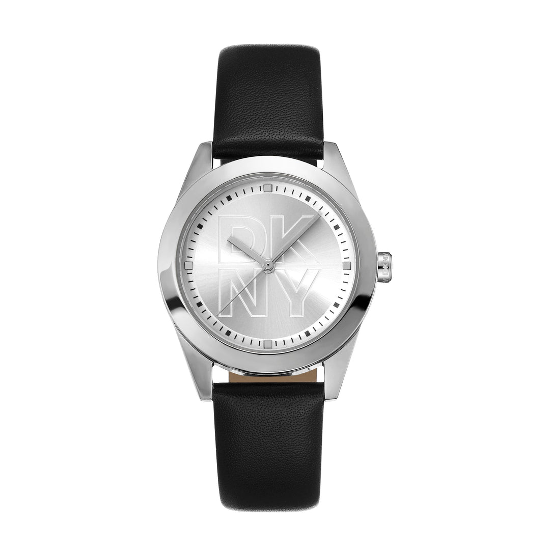 DKNY LOGO Women's Silver Dial Leather Strap Watch