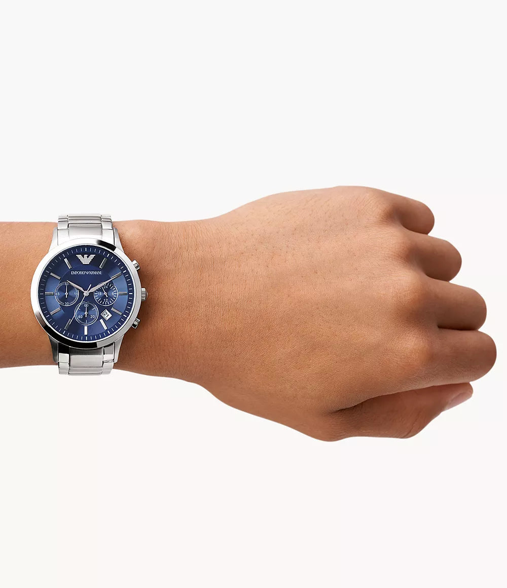 Emporio Armani Men's Chronograph Blue Dial Stainless Steel Renato Fashion Quartz Watch