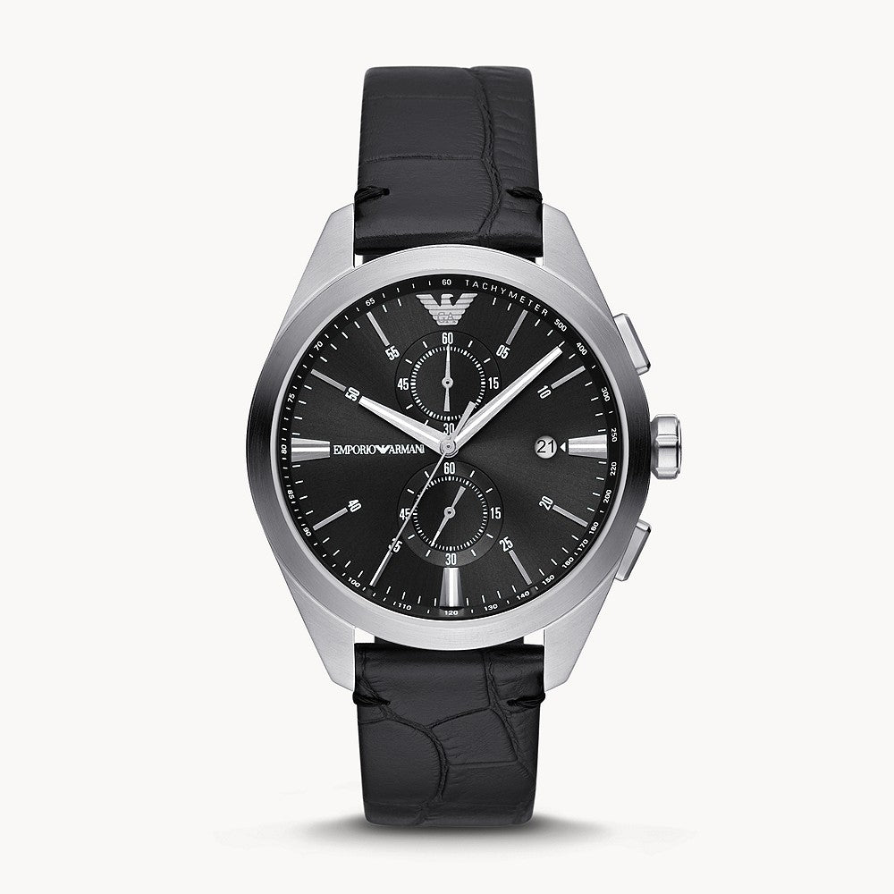 EMPORIO ARMANI CHRONOGRAPH BLACK LEATHER WATCH