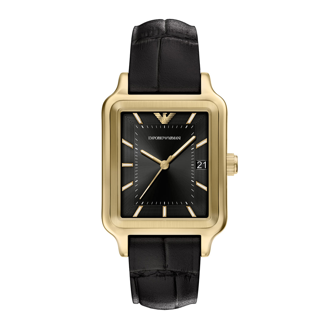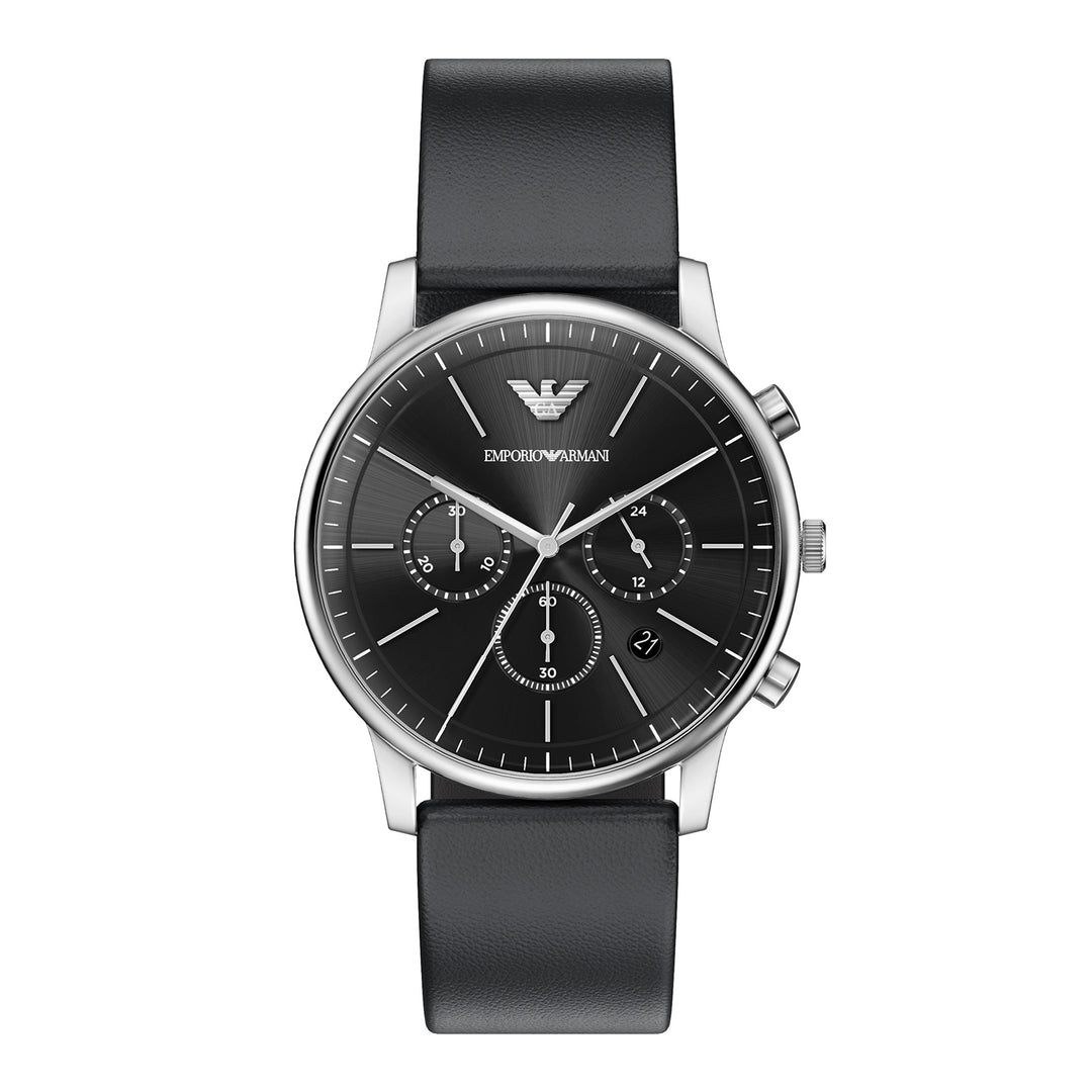 EMPORIO ARMANI TWO-HAND BLACK LEATHER WATCH