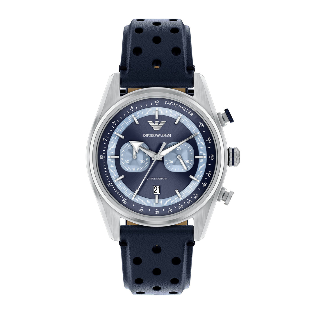 Emporio Armani Men's Chronograph Dark Blue Leather Watch