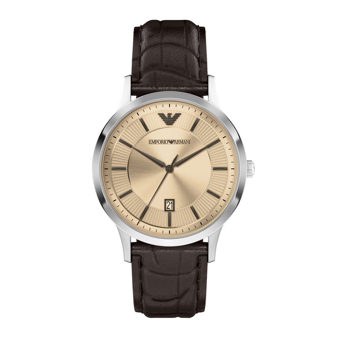 Emporio Armani Men's Three-Hand Date Brown Leather Watch