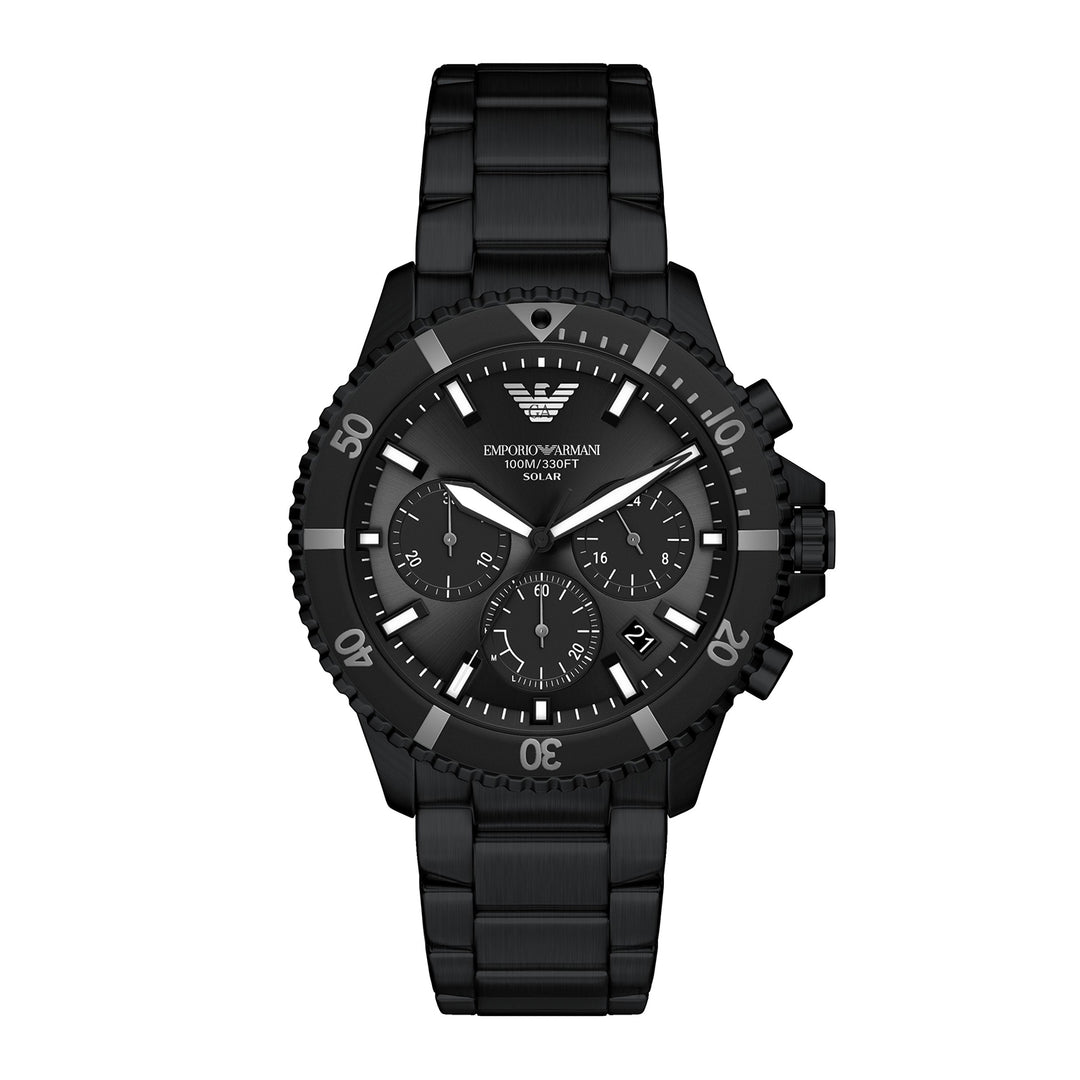 Emporio Armani Men's World Explorer Solar-Powered Chronograph Black Stainless Steel Watch