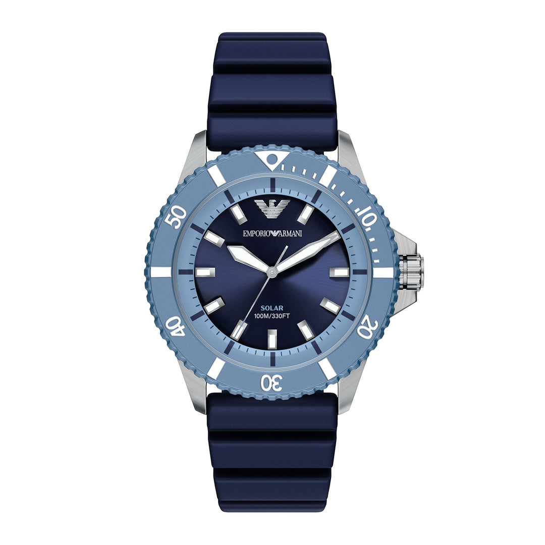 Emporio Armani Men's World Explorer Solar-Powered Three-Hand Blue Silicone Watch