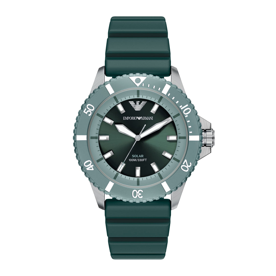 Emporio Armani Men's World Explorer Solar-Powered Three-Hand Green Silicone Watch