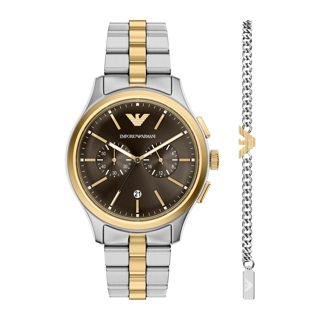 Emporio Armani Men's Chronograph two-Tone Stainless Steel Watch and Bracelet Set