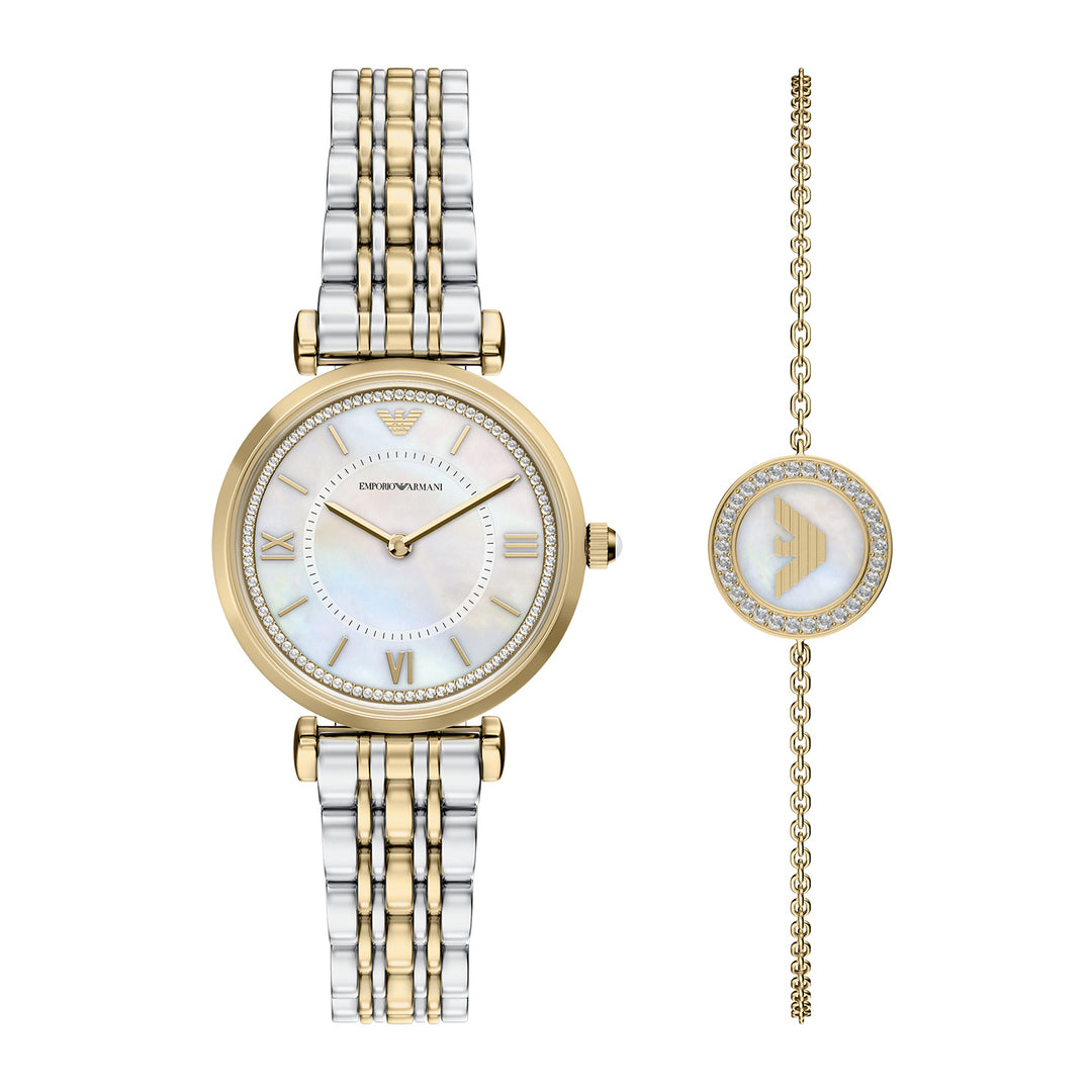 Emporio Armani Women's Two-Hand Two-Tone Stainless Steel Watch and Bracelet Set