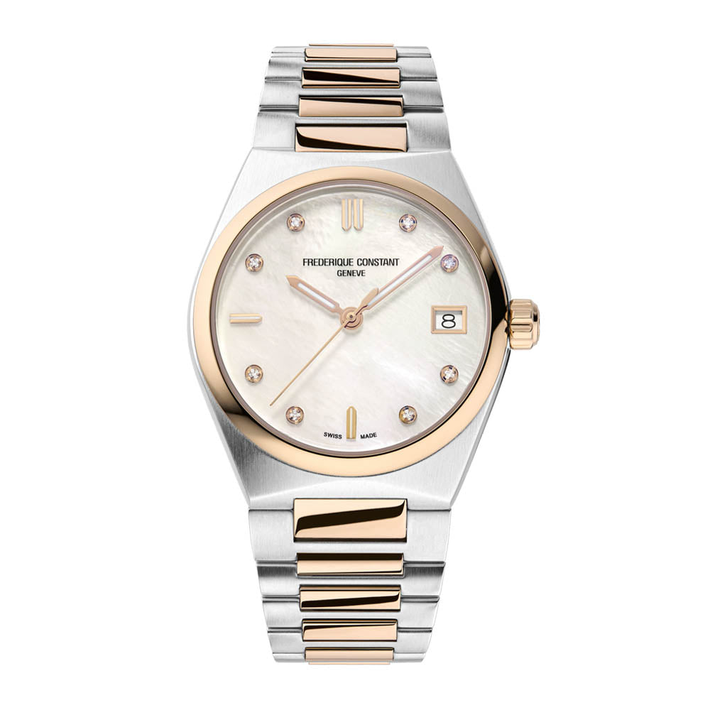 Frederique Constant Women's Watch Silver/Rose Gold Tone Case Silver Dial Quartz Watch