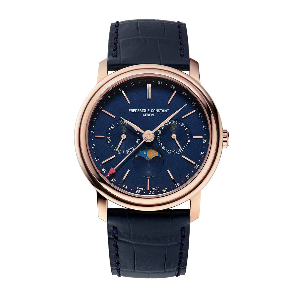 Frederique Constant Men's Watch Rose Gold Tone Case Blue Dial Quartz Watch