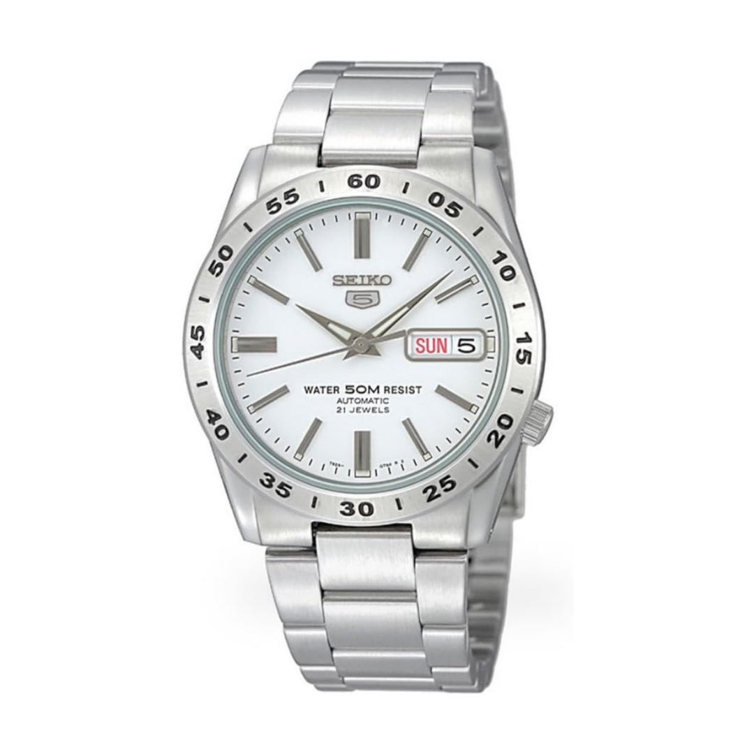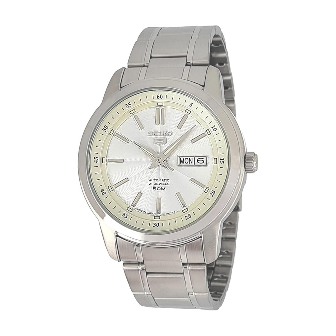 Seiko 5 Men's White Dial Stainless Steel Automatic Watch - Snkl24J1