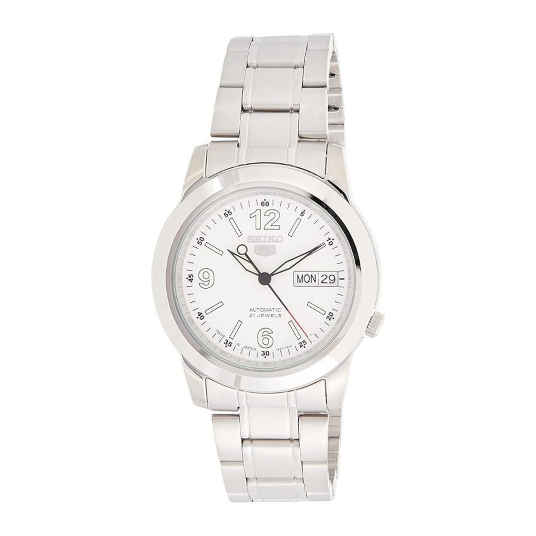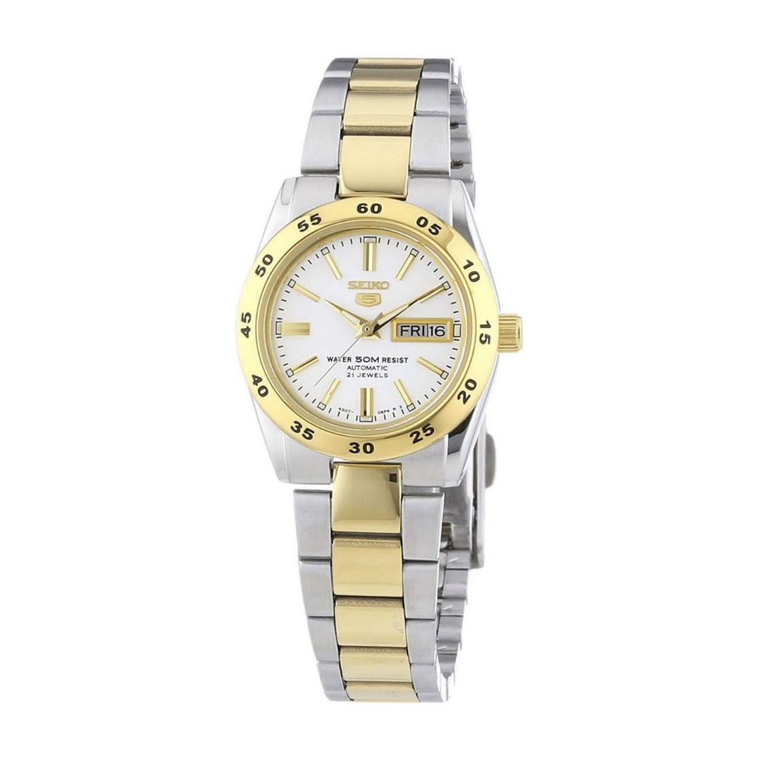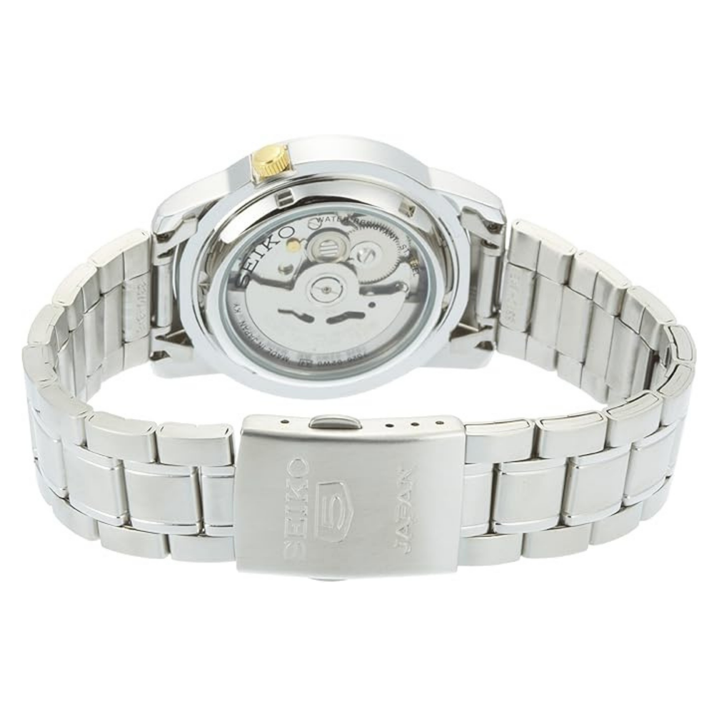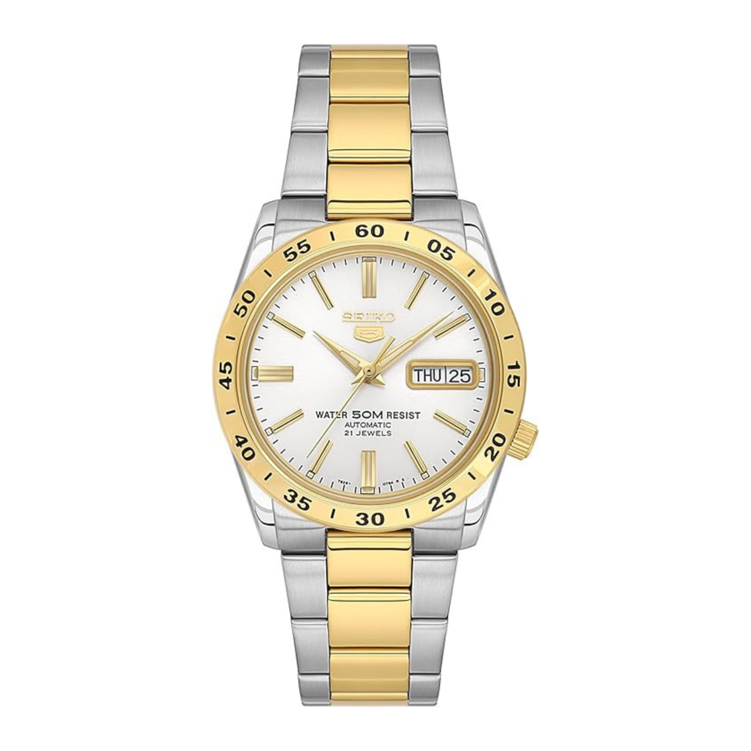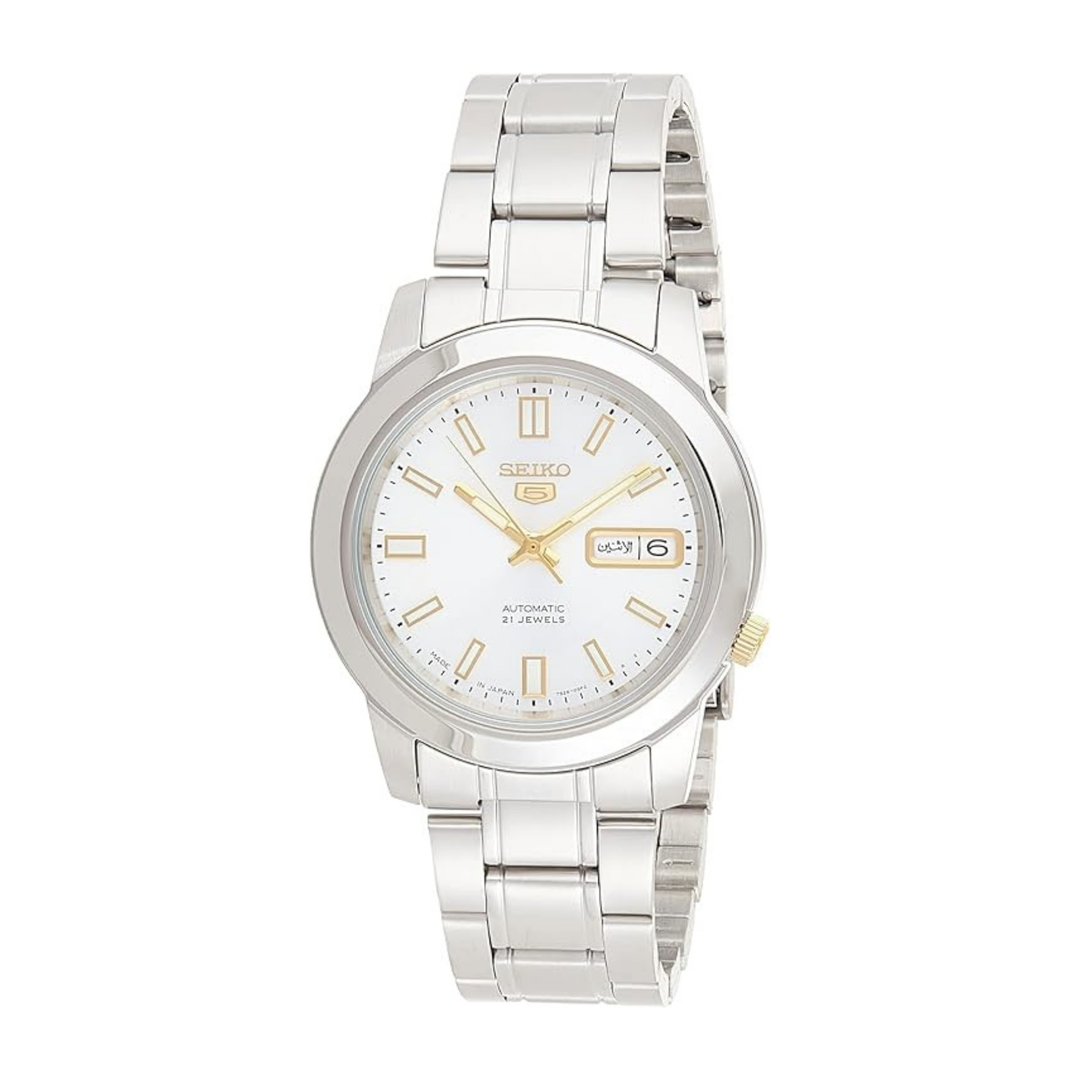 seiko 5 White Dial Automatic analog stainless steel watch for Men SNKM92J, bicolor, bracelet