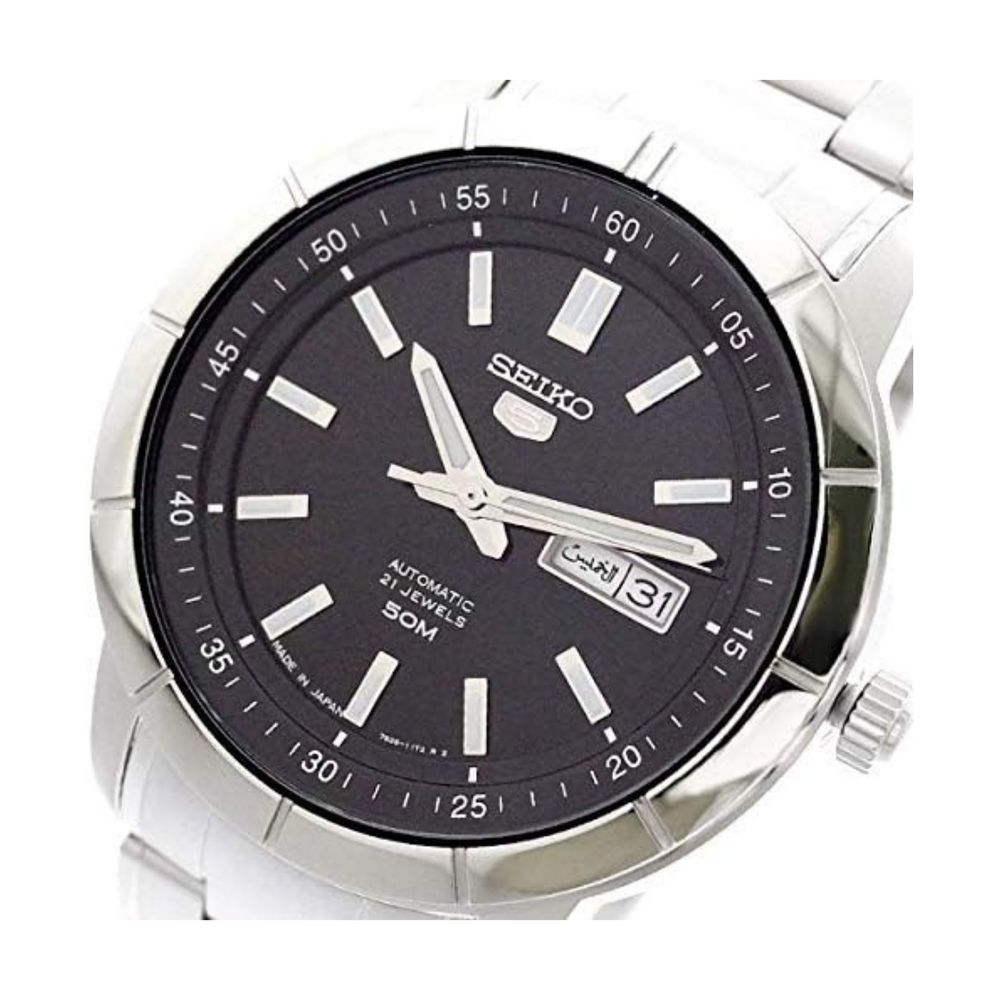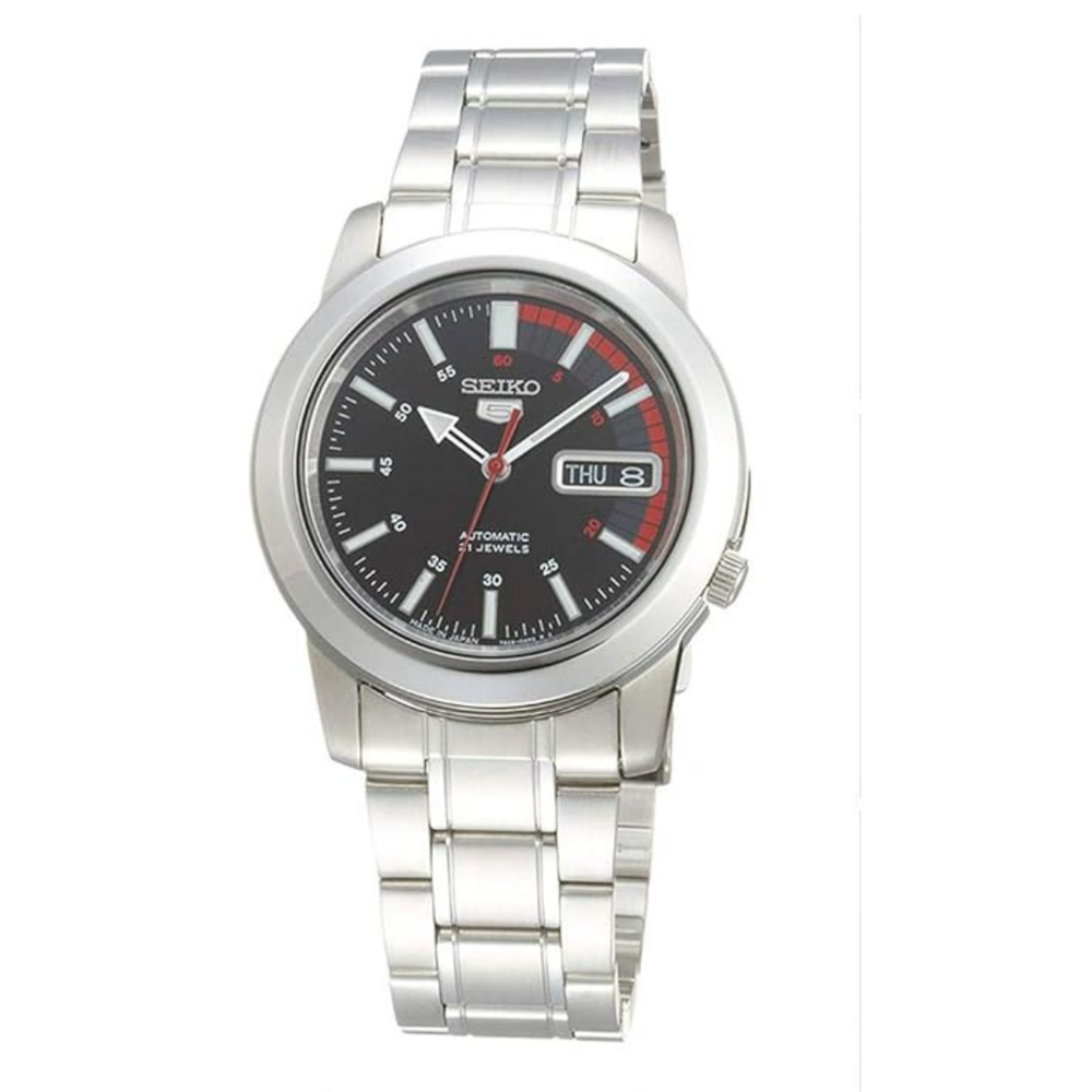 Seiko 5 SNKN55J1 Men's Japan Stainless Steel Black Dial Day Date Automatic Watch, Black, Automatic Watch
