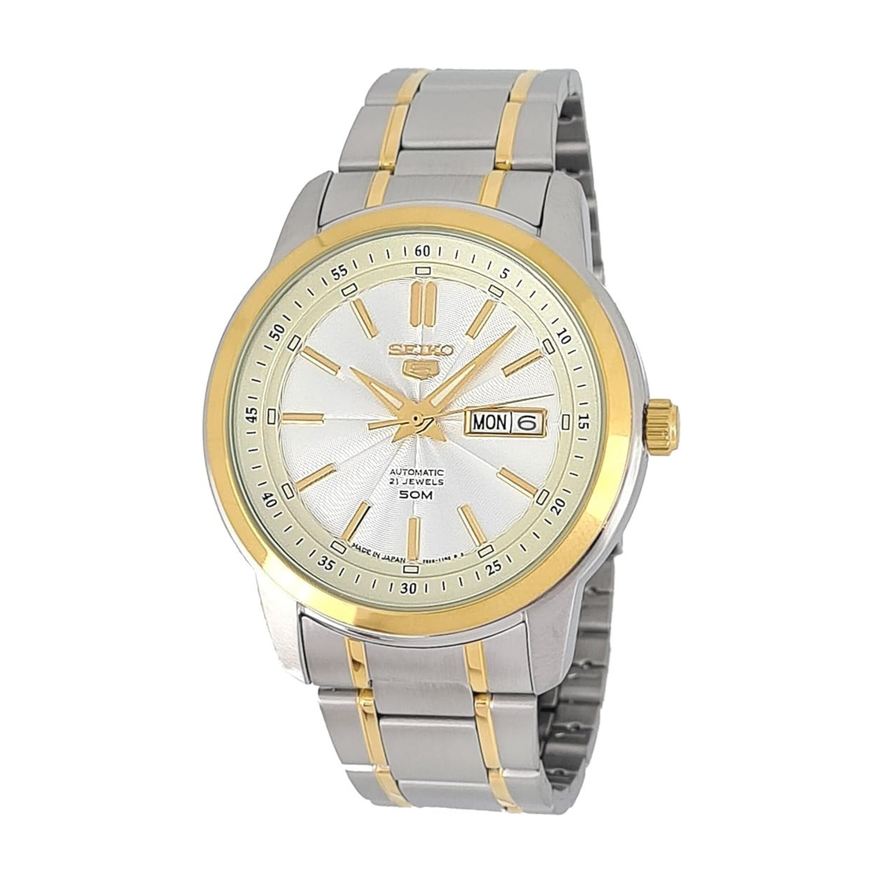 seiko 5 White Dial Automatic analog stainless steel watch for Men SNKM92J, bicolor, bracelet